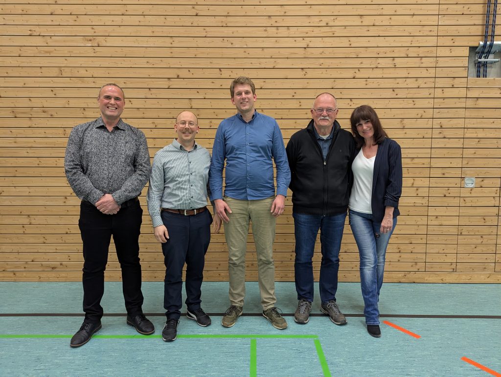 Die alten und neuen Vorsitzenden des ASV Schlichten. v.l.n.r.: ehemaliger 1. Vorsitzender Udo Issler, 2. Vorsitzender Angelo Greiner, 1. Vorsitzender Karl Kieke, Schatzmeister Reinhold Reinle, ehemalige 2. Vorsitzende Bettina Elwert