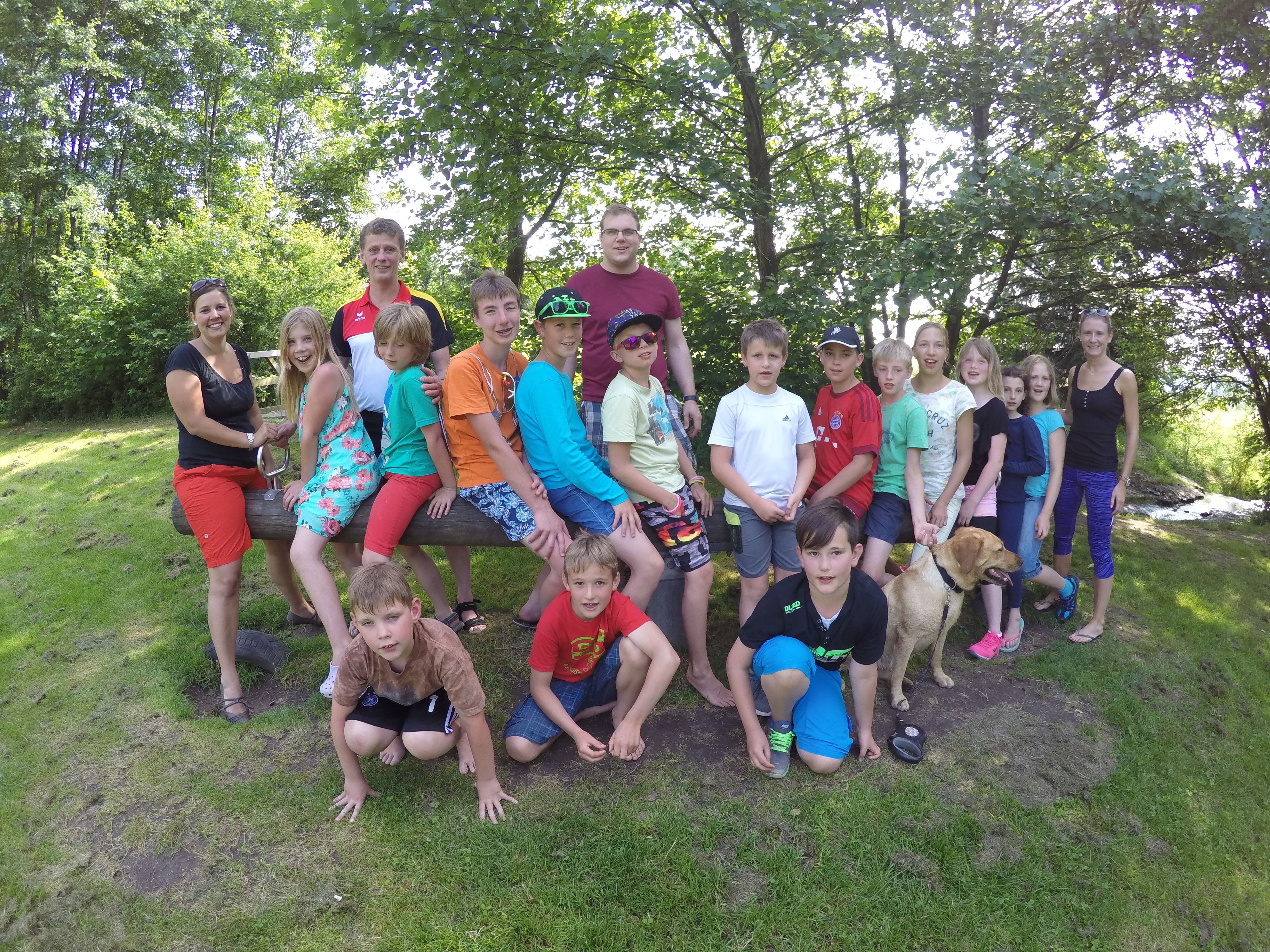 Am Wochenende 12. bis 14. Juni 2015 fand die diesjährige Kinderfreizeit des ASV Schlichten mit 15 Kindern im Alter von acht bis 13 Jahren statt. Am Freitagnachmittag ging es mit Privat-Pkw’s in Richtung Murrhardt ins Heuhotel Murrquelle. Nachdem das Heulager gemütlich und stupfelig eingerichtet war, wurde der Bauernhof entdeckt und erste Kontakte zu den Tieren geknüpft. Bei Einbruch der Dunkelheit ging es auf eine spannende Nachtwanderung. Am Samstagmorgen war bei bestem Wetter eine lustige Eselwanderung angesagt, bevor am Mittag eine matschige Wanderung zu den Hörschbachwasserfällen führte, die mit einem Plantsch im Fluss endete. Der Abend wurde mit viel Spiel, Spaß und einem gemütlichen Grillabend mit anschließender nächtlicher Schnitzeljagd verbracht. Nach Räumung des Heulagers ging es am Sonntagmorgen an den Waldsee bei Murrhardt. Bei strahlend blauem Himmel verbrachte man den Tag mit Baden, Tretboot fahren und vielen Sportspielen am See, bevor man am Abend wieder zurück auf den Schurwald fuhr. Bei bestem Wetter, einer tollen Unterkunft und vielen Abenteuern erlebten alle ein wirklich schönes, sportliches und vor allem unvergessliches Wochenende. Der ASV Schlichten bedankt sich beim Betreuerteam Aline, Jana, Heiko und Karsten für die Organisation und Durchführung sowie bei der Kreissparkasse Waiblingen für die finanzielle Unterstützung der diesjährigen ASV-Kinderfreizeit.