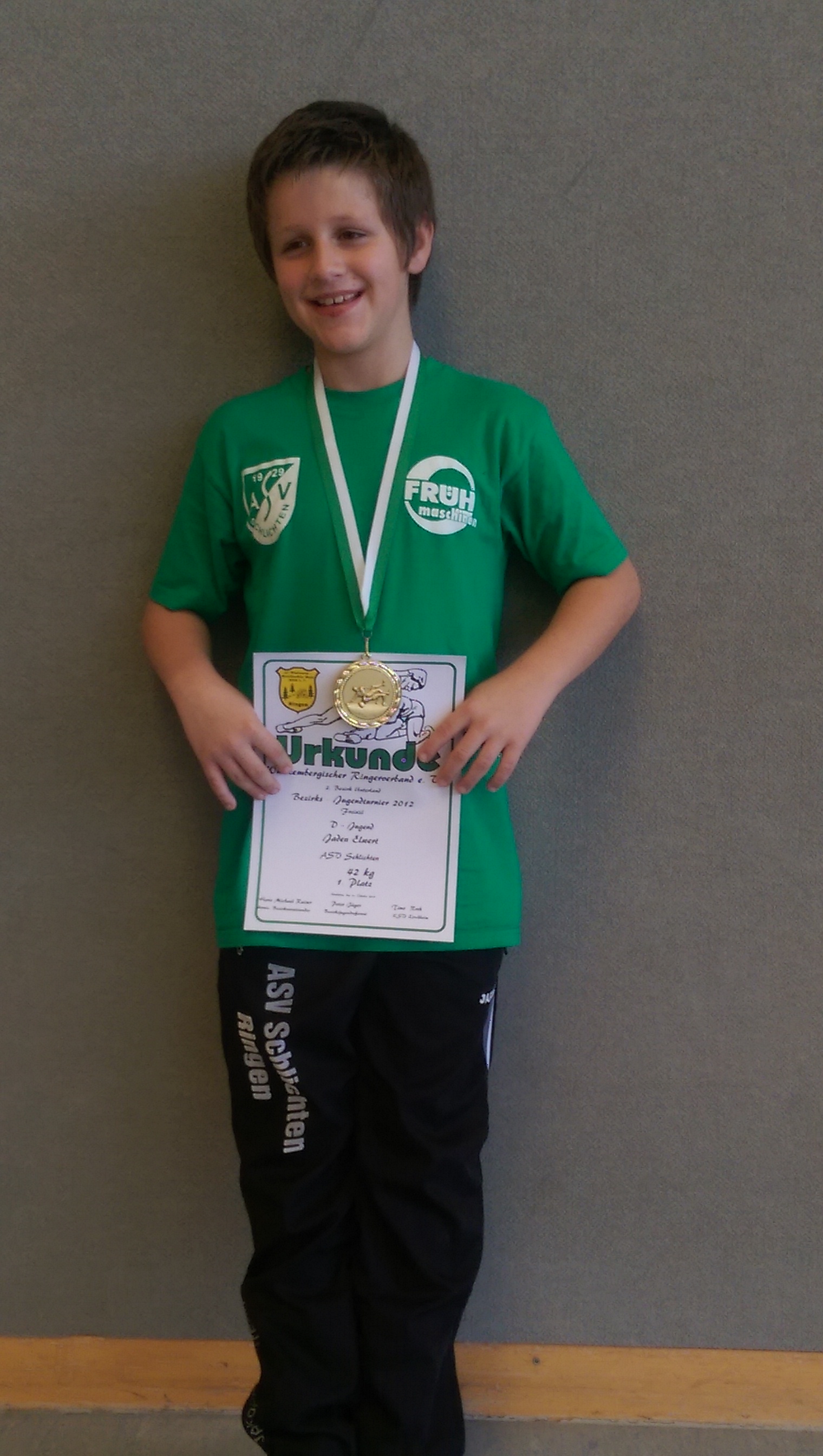 Unter den 80 Athleten die heute beim Bezirksturnier in Neuhütten antraten, war auch ein Jugendringer des ASV Schlichten in der D-Jugend Klasse bis 42 KG am Start. Nachdem bereits die Aktiven am Vorabend einen Sieg gegen den ASV Schorndorf errungen haben, startete Jaden Elwert mit gleichem Siegeswillen gegen den Schorndorfer Peil in das Turnier und konnte den Kampf bereits in der ersten Runde entscheidend gewinnen. Nach einem weiteren entscheidenden Sieg über den Böckinger Athleten Stimpfig, stand der Turniersieg bereits am späten Vormittag fest. Die heute gezeigten Leistungen, lassen auch für das bereits am nächsten Sonntag statt findende Turnier in Ebersbach eine gute Platzierung erwarten. Ein Dank an die Betreuung von seinem Vater Marcus.